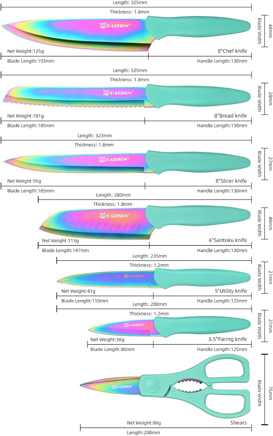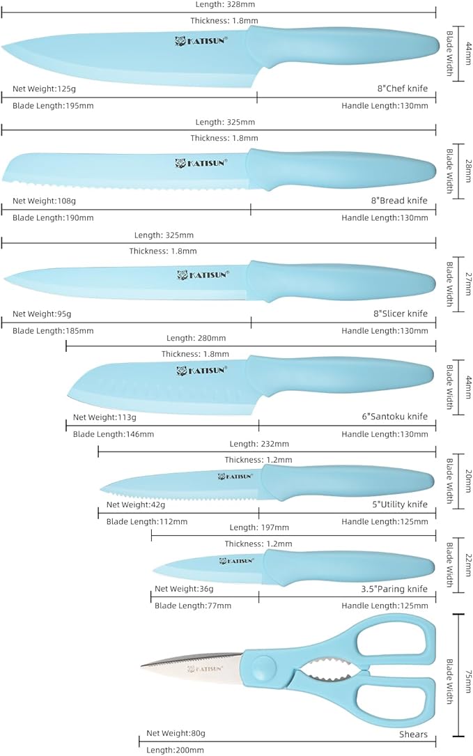 Crafted from high-quality stainless steel and finished with a stunning blue non-stick coating, this set delivers sharpness, durability, and visual impact in every slice.